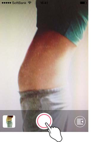 前の写真透かし機能を利用して撮影する場合、ヒップのラインで合わせるとおなかが膨らんでいく様子が分かりやすく撮影できます。