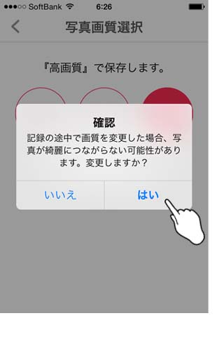 写真画質変更の際には、以下の確認が表示されます。「いいえ」を選択した場合、変更されません。